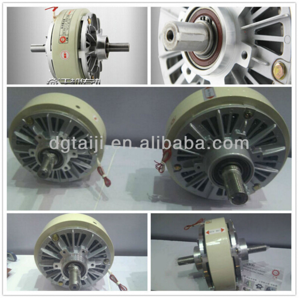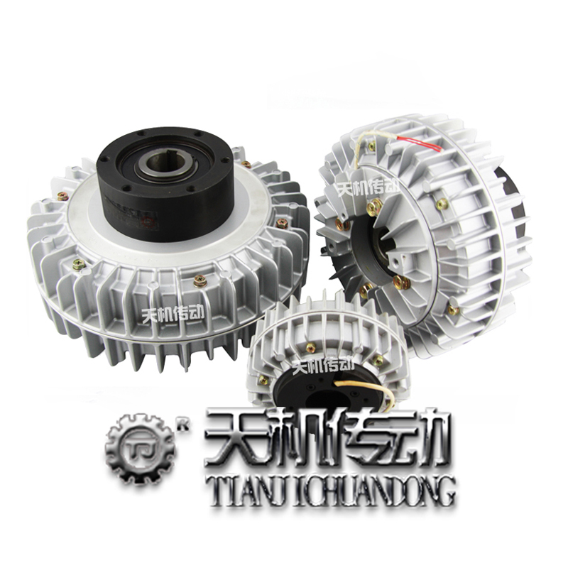 在無變速機的情況下,卷繞材料所需的最大張力與最大卷繞半徑的乘積應小于雙伸出軸磁粉離合器的額定轉矩。此外,磁粉離合器的選擇還與其位置有關系:在滑差功率匹配的前提下,把磁粉離合器放在高速級,則可以選擇較小規格的離合器,其體積、成本也相應下降。當小規格磁粉離合器不能匹配,而需較大磁粉離合器時,應將其置于傳動機構的中部或后部,以增大工作轉矩降低滑差轉速。