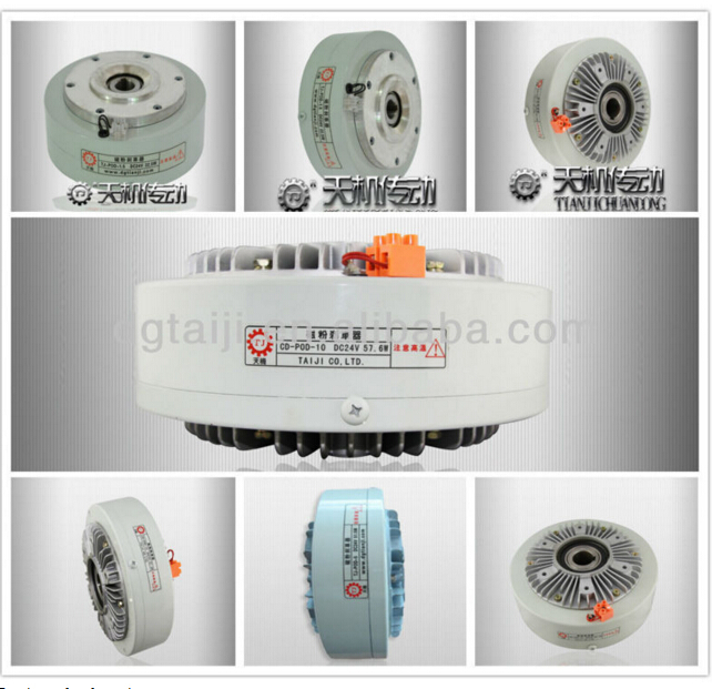 東莞天機傳動空心磁粉剎車器廠家(孔式磁粉剎車器)是由傳動單元(輸入軸)和從動單元(輸出軸)合并而成。在兩組單元之間的空間,填有粒狀的磁粉(休積大約40微米)。當磁性線圈不導電時,轉矩不會從傳動軸傳于從動軸,但如將線圈電磁通電,就由于磁力的作用而吸引磁粉產生硬化現象,在連繼滑動之間會把轉矩傳達。 磁粉制動器是一種性能優越的自動控制元件。它以磁粉為工作介質,以激磁電流為控制手段,達到控制制動或傳遞轉矩的目的。其輸出轉矩與激磁粉電流呈良好的線性關系而與轉速或滑差無關,并具有響應速度快,結構簡單的優點。