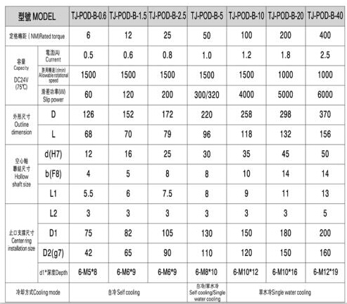 空心孔式磁粉制動器尺寸參數表!東莞天機傳動孔式磁粉制動器即空心旋轉型磁粉制動器,