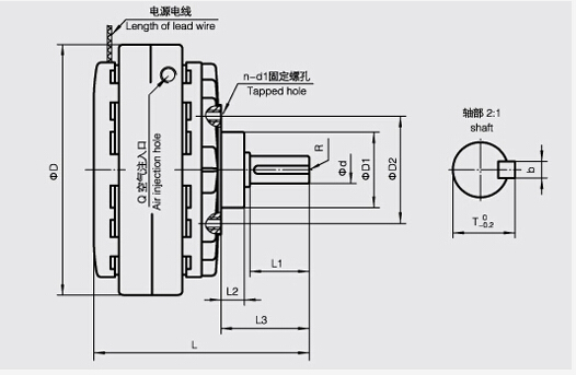 POD型磁粉制動器與磁粉離合器的原理相同,只要磁粉離合器的從動轉(zhuǎn)子加以固定,就形成了磁粉制動器。