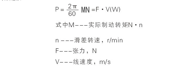 磁粉制動器、磁粉離合器的選型一般以所需傳遞最大轉矩為依據來選定,并注意保證實際使用的滑差功率,應小于技術參數的允許滑差功率,余量大點更能延長使用壽命。計算公式: